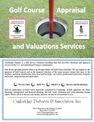 One of Cambridge Partners' specialty practice areas is in the valuation of Golf Course facilities. We are leaders in understanding that golf courses are complex real estate businesses deriving their income from myriad sources. When completing analyses of golf courses, we consider revenues generated from more than just greens fees, cart rentals and concessions. We work hard to understand income generated from other sources, such as: lessons, clubhouse merchandise sales, beverage carts, USGA memberships, banquets and events, tournaments, outings, sponsorhips, etc.